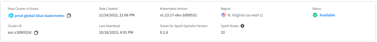 - Last Heartbeat: The last heartbeat or the Ocean Spark controller.